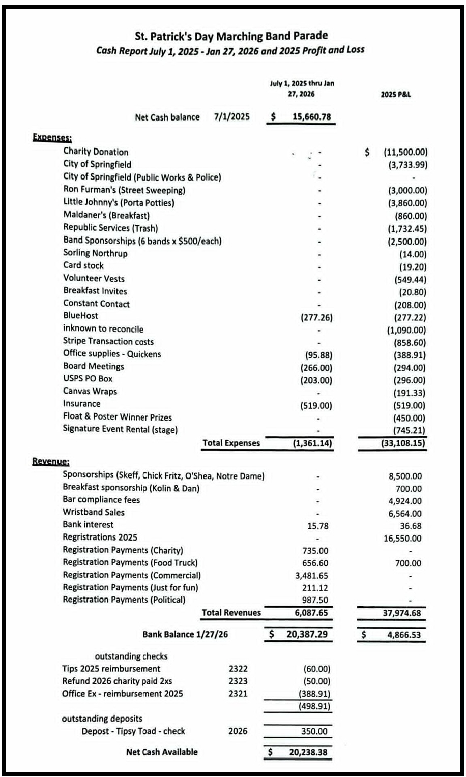 10) March city council meeting to announce the parade..we get 5 minutes at the meeting.