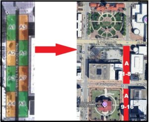 1a) We can’t really mark the Horace Mann Lot with Chalk or anything to mark the “Spots”….but I could make poles that stand up and mark the “Rows.”